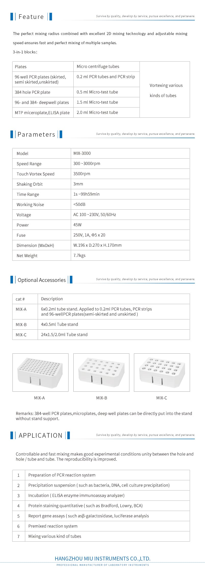 • Product description: MIX-3000 Smart Mixer is a compact mixer with high efficiency and multiple functions. It integrates mixing, shaking and vortex with intelligent operation. It can mix various tubes, PCR plates, deep-well plates, micro plates and other common laboratory supplies, but also equip vortex function of all kinds of tubes. It is uniquely designed combining mixing and shaking with intelligent operation.